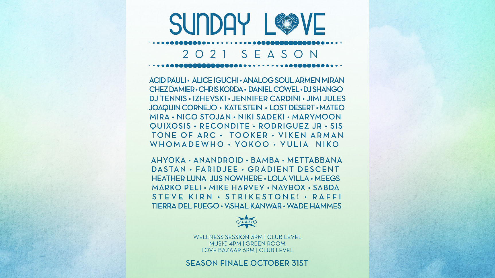 Sunday Love, Flash’s signature daytime party takes place every Sunday from March to October, starting at 3pm. The event thrives on creating an inspiring club environment with activities and unique pop-ups and decor, custom to that weekend’s lineup. Incredibly priced season passes are available for a limited time.